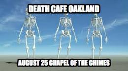Death Cafe Oakland is a safe, welcoming place in which people share their ideas, concerns, fears, and hopes about death as well as coffee, tea, and cookies. Death Cafe is ...