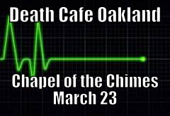 Death Cafe Oakland is a safe, welcoming place in which people share their ideas, concerns, fears, and hopes about death as well as coffee, tea, and cookies.