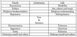Below is my attempt to explain the objectives for this work. I'm suggesting a dialogue with fear of and aversion to death. I'm saying that we should look at this, not try to zone it out.