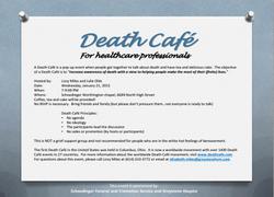 A worldwide, volunteer-based phenomenon, Death Cafe encourages people to share food, drink, and small-group conversation about death and dying in a comfortable setting free of agenda or ideology. Hosted by ...