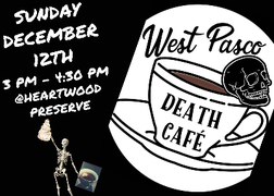 Held at Heartwood and other local places going forward (Downtown New Port Richey etc) follow along on the Heartwood Preserve calendar of events page and the' Death Cafe Trinity Page ...