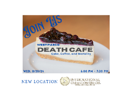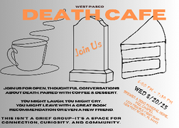 West Pasco Death Cafe is a free, informal gathering where people can come together to talk openly about death and related topics in a safe, welcoming environment.